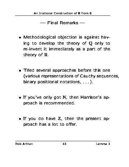 An Irrational Construction of R from Z - Slide 14